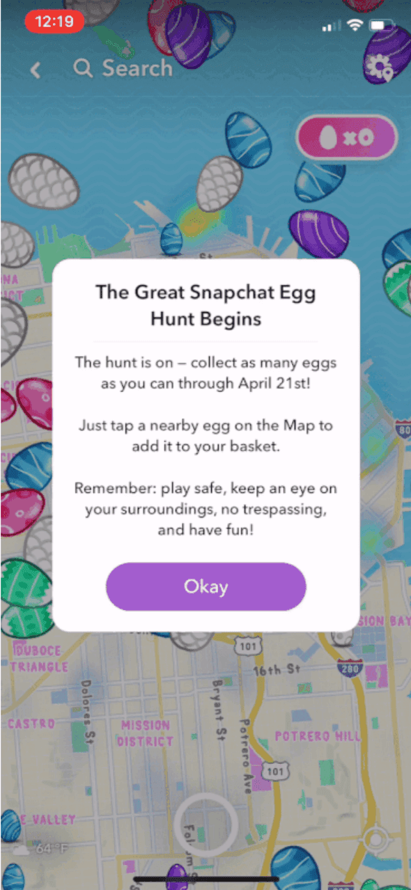 In 2018, Snapchat introduced their Augmented Reality Easter Egg Hunt, which allowed its users to scavenge for virtual eggs using the app’s Snap Map feature.