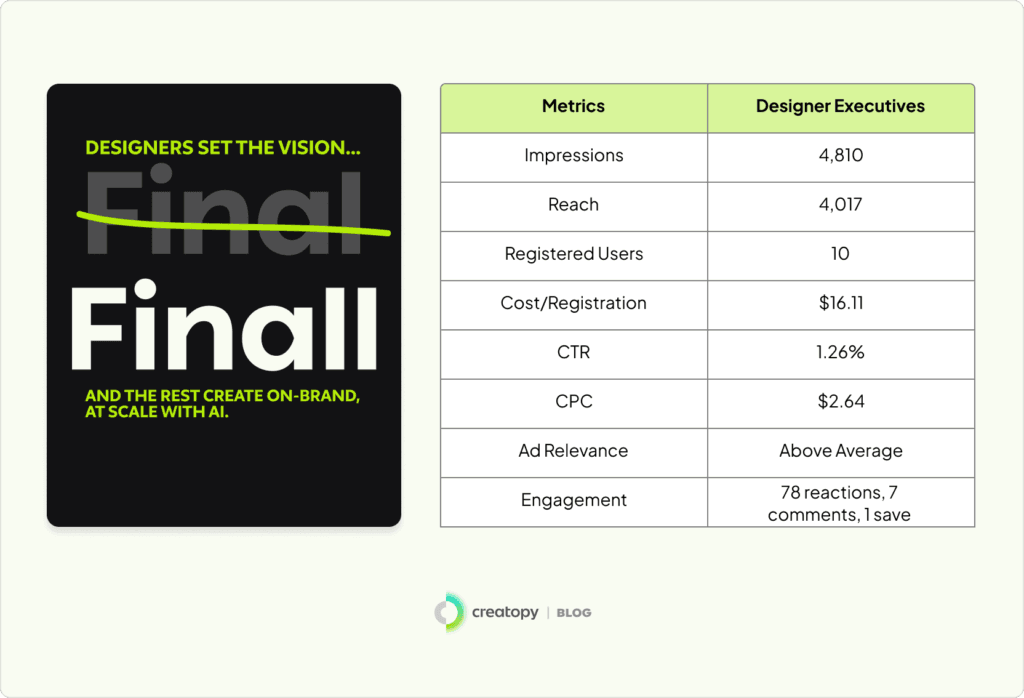 Creative: "Final," targeted at Designer Executives, emphasized control over brand consistency.