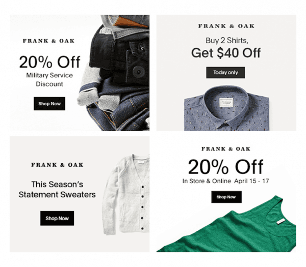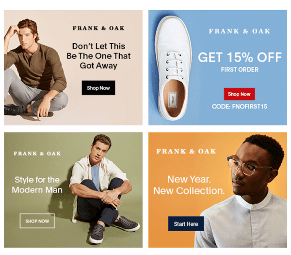 But let’s not go further with our imagination and stay close to reality. We can still use minimalism in our banner ads like the “Frank & Oak” brand does.