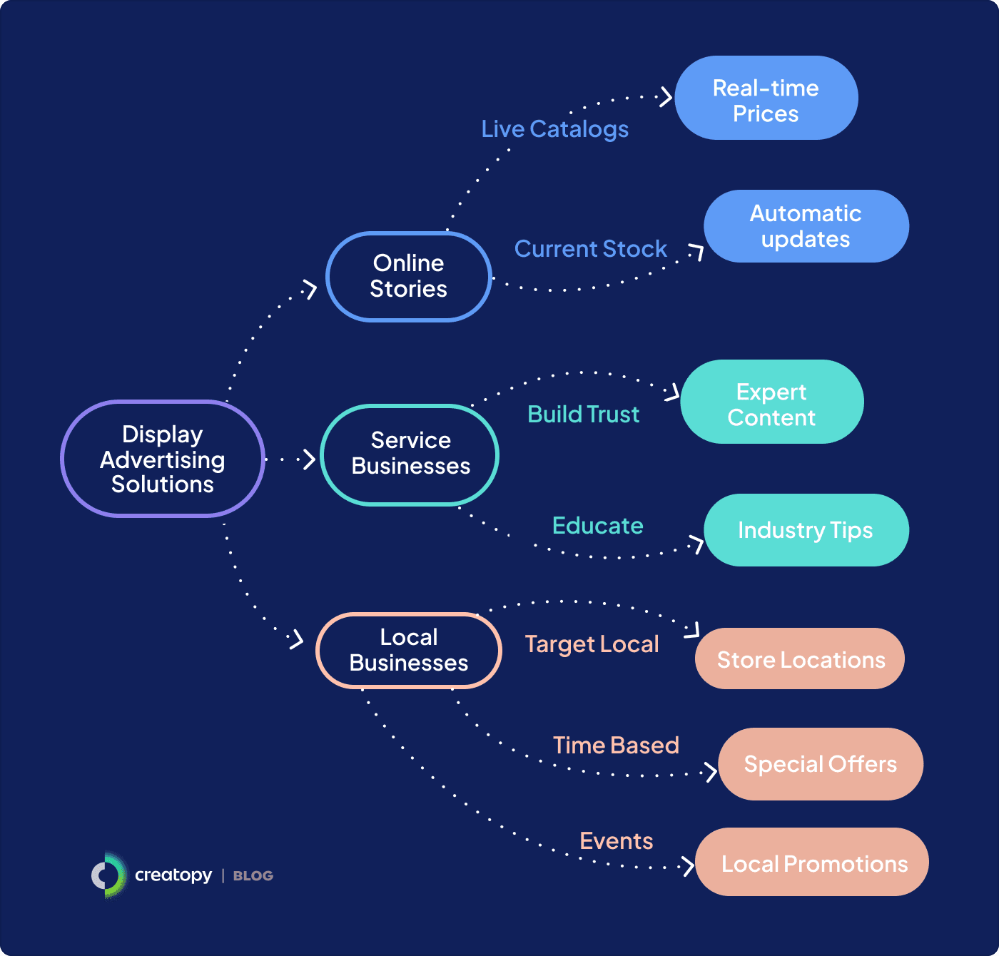 Service businesses show another side of what makes display advertising powerful. They use educational content to build trust and show expertise. Their ads might teach viewers something useful about their industry or offer helpful tips. This helps them connect with people who need exactly what they offer.