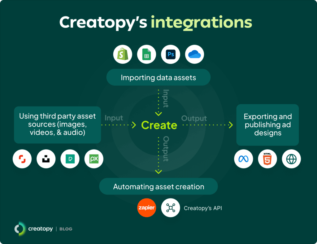 Creative automation lets you create a large amount of ads based on your products while avoiding tedious manual work. The right integrations can help you import datasets containing, for example, product images, pricing data, and advertising copy, using these as a springboard to create ads automatically.