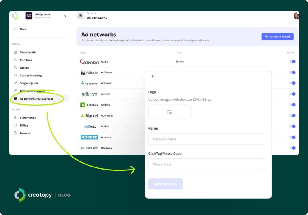 If you don’t see your ad network in the image above, don’t worry. You can also add custom networks to your list of networks in The Brief. All you need to do is add the following details: