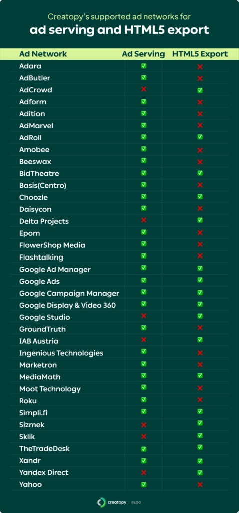 See a list of all the supported ad networks and HTML5 exports in The Brief below.