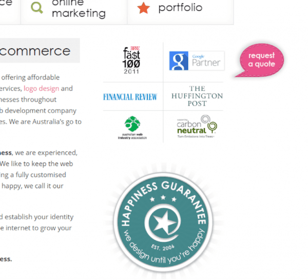 Magicdust is one web design company that wanted to increase conversions and added a badge “Happiness Guarantee”. After integrating this idea, their conversions skyrocketed by more than 56%.