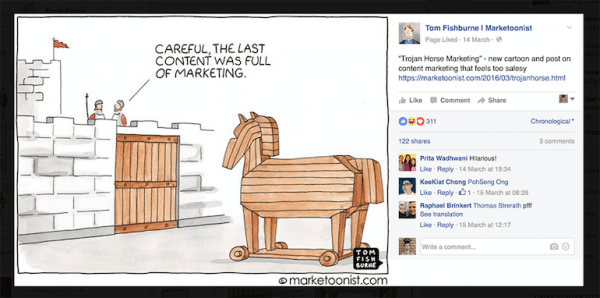A good example comes from Tom Fishburne’s project – Marketoonist.com.