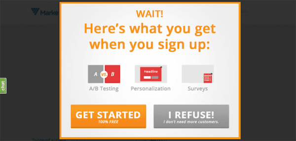 If you don't want to be transparent with them or if you don't want to make them download an ebook, just tell them want will they achieve if they sign up to your newsletter. Just like the way Marketizator have one with this pop-up. They claim that if the user signs up he gets 3 things. And if they are not interested, well…that means that they just don't want more customers.