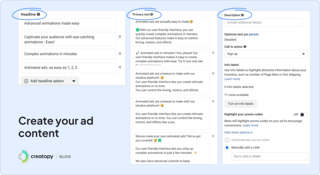 Step 7: Create your ad content.
