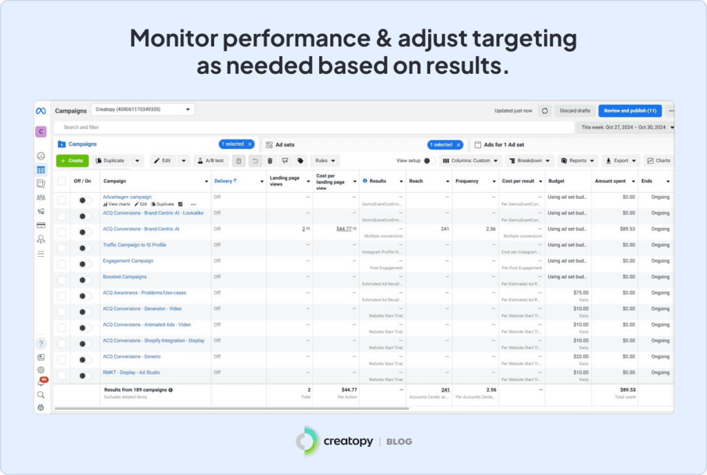 As you can see, it's important to keep track of how well your targeting performs by looking at how many people buy something, click your ads, and how much each new customer costs. Check these numbers often to see which targeting works best. As previously mentioned, make sure to use Facebook Pixel to track everything properly.