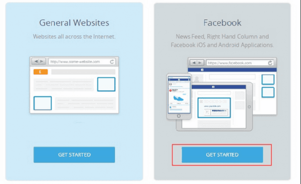 On the next page select the “ Facebook “ option and click on the “ Get Started” button.