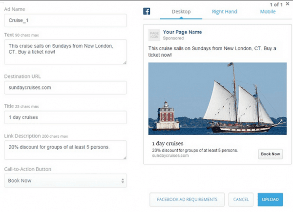 Now you can add your Facebook ads. Please keep in mind that your Facebook ads must have less than 20% text and the file size must be less than 1MB.