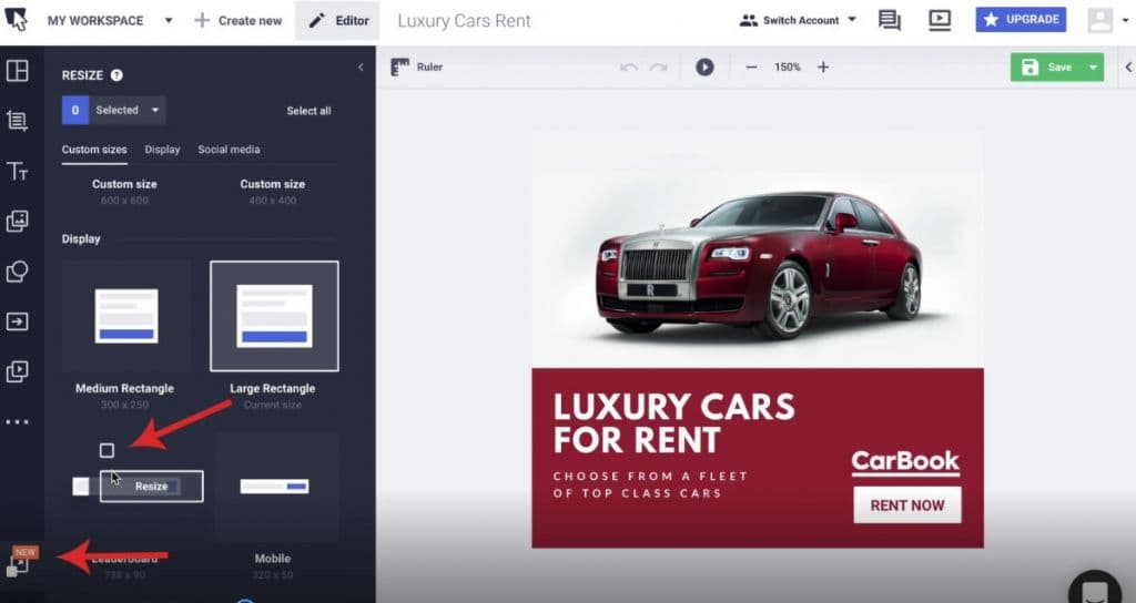 Most of the times, you will need to scale a campaign you will use the same sizes. So, if you already have a banner size that you frequently use, like your home page-banner, for example, you can now save it and use it anytime. This way, your custom sizes will be ready to use with the new Smart Resize, the Editor or the Generator.