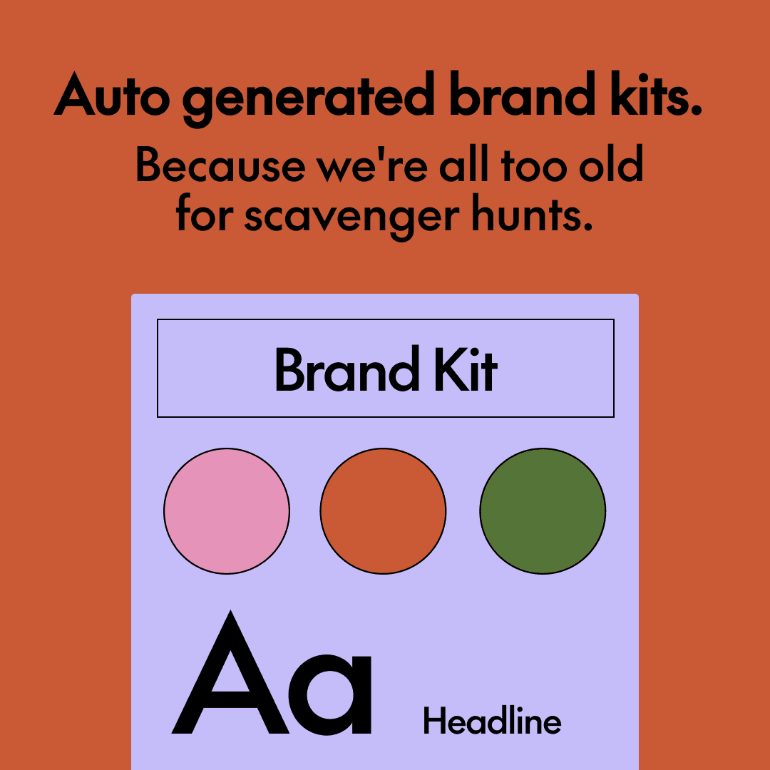 Over 16,000 client brand kits created. That's 16,000 happier clients and creatives. Because we're all too old for scavenger hunts.
