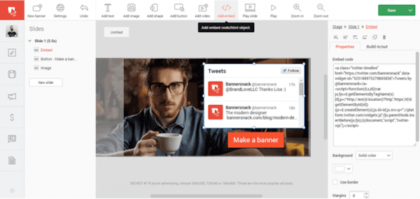 This is why we developed a feature where you can insert any embed code from your social media and personalized as you want.