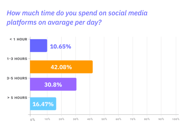 According to eMarketer, Snapchat is currently the platform with the most monthly Gen Z active users, 44.5 million. However, only 6.27% of our respondents said they use Snapchat the most, which reveals that although lot of Gen Z uses Snap, they spend little time on this platform compared to others.