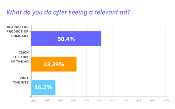 A fair share (33.39%) will also click the link in the ad, so make sure the page they land on is as relevant as possible to the context of the ad to not appear untrustworthy.